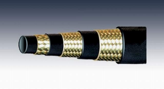 高壓纏繞膠管是一種由鋼絲纏繞高壓膠管,它適用于煤礦礦井液壓支架、油田開采、工程機械設備的液壓系統,輸送具有一定壓力和溫度的水、乳化液。乙二醇溶液、礦物油、可溶性油等介質。產品結構所有型號的軟管均由耐液體的合成橡膠內膠層、保護層、以交替方向纏繞的四層鋼絲增強層及耐天侯性能優良阻燃抗靜電的合成橡膠外層組成。特殊要求時外膠層外可添加保護層。