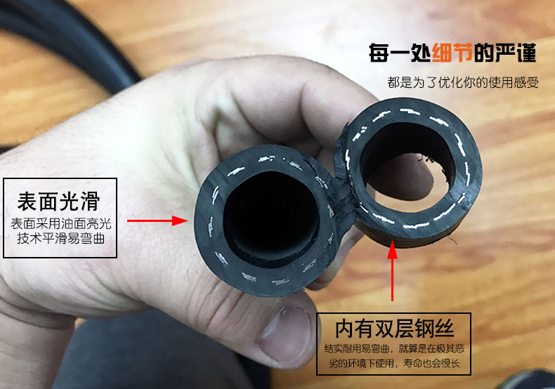 應用:主要用于汽車工業、工程機械、起重運輸機械的高壓輸送及液體傳動,具有良好的耐油、耐熱及耐老化性能,承受壓力高,脈沖性能優良,可作為高壓噴漆、高壓清洗機專用管。
