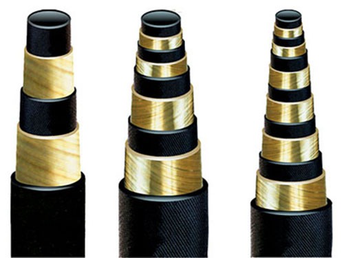 鋼絲編織高壓膠管的構造:特種橡膠合成的內膠層,一層或多層編織網,外膠層合成